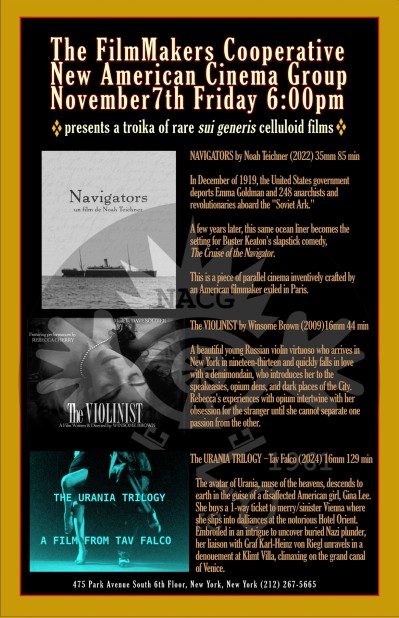 On Friday, November 7th, at 6pm, legendary musician, filmmaker, and multimedia artist Tav Falco (whose moving image work recently joined the collection of The Film-Makers' Cooperative) has curated a program for the FMC Screening Room (475 Park Avenue South, 6th Floor): a troika of sui generis films, including his avant-garde feature THE URANIA TRILOGY.
